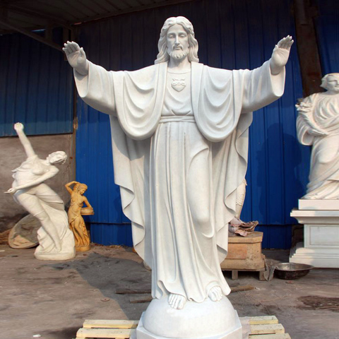 Outdoor Life Size Wit Marmer Gesneden Jezus Standbeeld Antiek Religieuze Tuin Decoratief Beeldhouwwerk